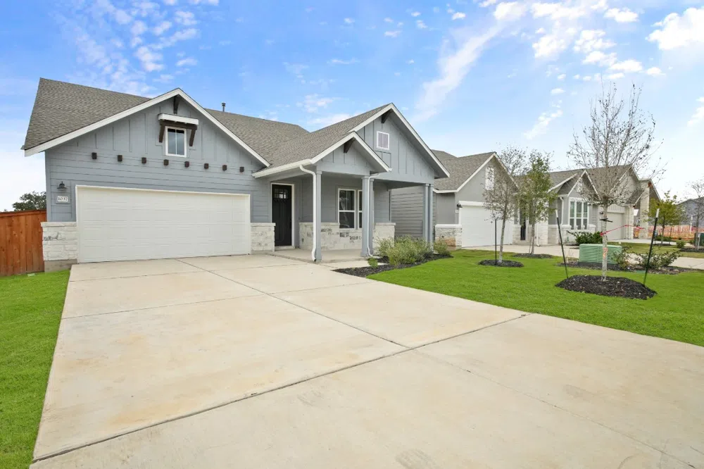 Newmark Homes Carriage Plan is a charming home in the newest section of Headwaters. This 3 bed/ 2 bath/ 2 car garage home includes top of the line finishes such as: a mud room, open concept kitchen with stainless steel appliances, front porch, rear covered patio, tankless water heater, quartz countertops and a view of the greenbelt.