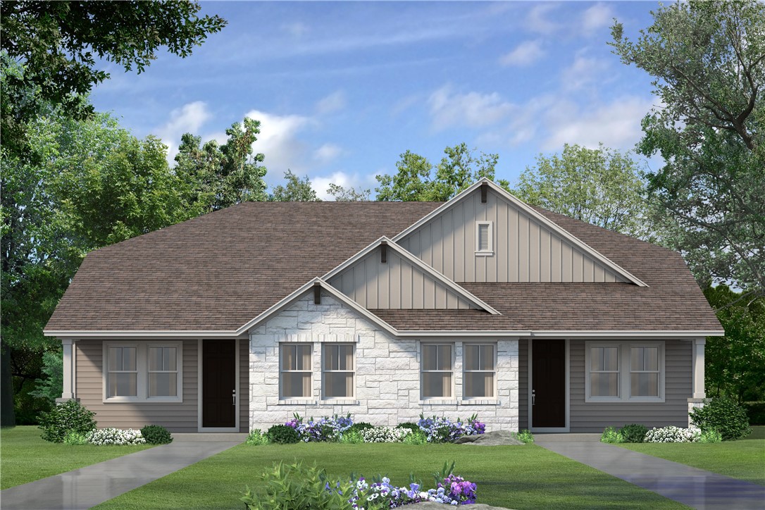 This home is a Galvez Villa. This is a condominium that will have a shared wall with one other unit. This home is a Texas Hill Country exterior with stone accents. This home has 2 bedrooms, 2 full baths, a 1 car garage, and a Laundry closet for a stackable washer and dryer. This home has granite countertops in the open kitchen and white cabinets throughout. This home will include a side by side refrigerator and 2 pendant lights over the kitchen island. This home has an upgraded wall oven and gas cook top with plenty of storage. This home will have hardwood flooring in the main living areas and tile in bathrooms. Please come check out this cute 1274 square foot villa and leave the landscaping maintenence to the HOA!
