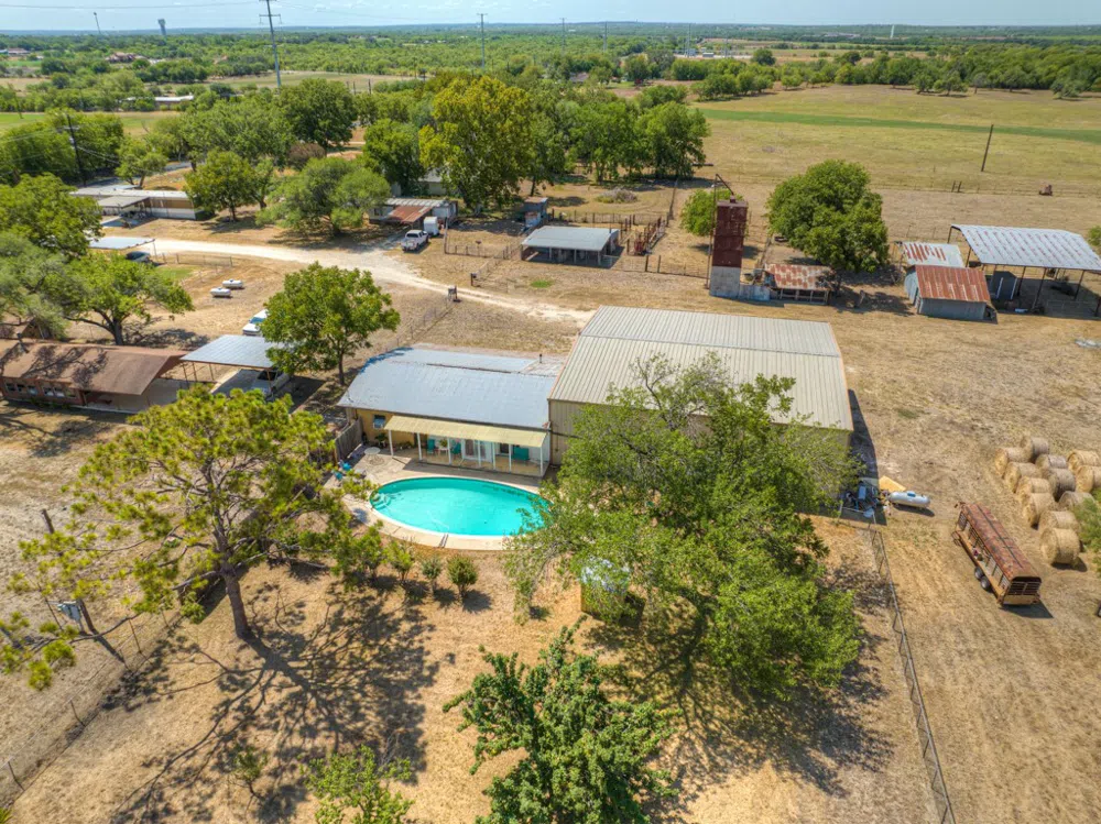 Determine your own path with this unique 33.68-ac property! 31.68 ac are currently AG exempt with cattle grazing. With 5 habitable structures, numerous barns/sheds/shop/pens and squeeze chute, this property is capable of many operations. Property is fully fenced, cross-fenced & has 2 ponds. Main house is 3/1, Guest house is 1/1 w/ pool, outdoor shower, exercise room and is attached to the high-bay shop. 3 mobile homes are rented and producing income totaling $2387/mo. Each of the 5 structures has it's own septic & propane tank. This property has co-op water, cistern and FULL water rights to the BMA canal system (canals on 3 sides of the property)! There are also 2 capped (not plugged) oil wells on the property. All water & mineral rights convey with the sale. NOTE: Wall-mounted televisions in Guest/Shop House do NOT convey.