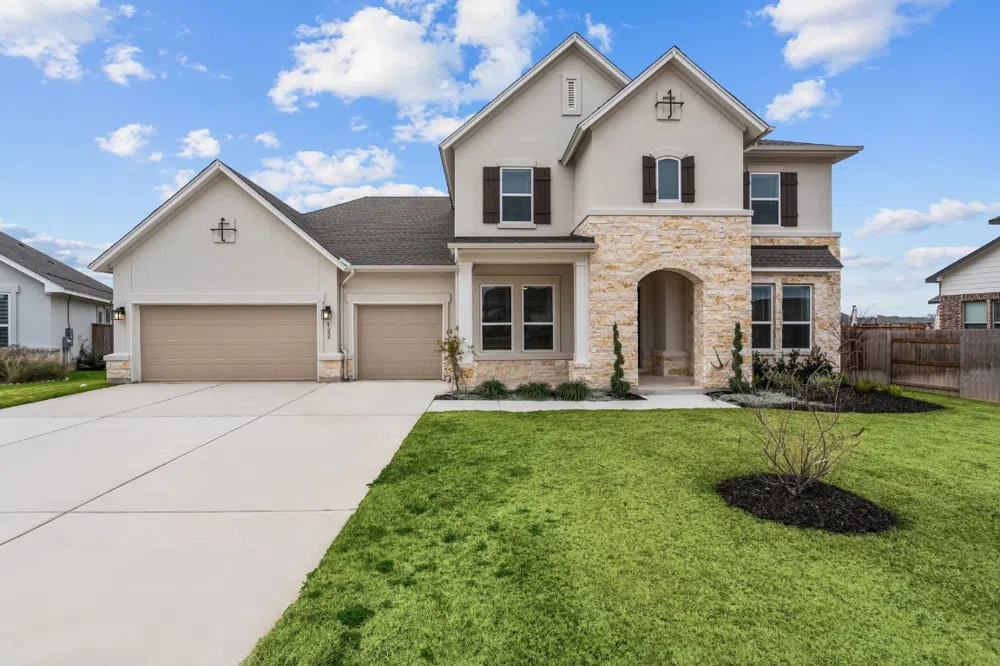 This lovely new home in Colony Riverside offers beauty and functionality, all in a wonderfully spacious home! This two-story Coltman by David Weekley Homes sites on an 80' home site near the pool and gym amenities. The home blends a classic stucco and stone exterior with a contemporary open-concept interior design with 10-foot ceilings throughout. Gourmet kitchen has two pantries for all your grocery stocking needs. Guests have their own downstairs suite with easy access to other living spaces. French doors lend quiet to the home office-ready study situated near the front of this home. Wake every morning to sunshine and trees all visible from your spacious Owner's Retreat and refresh after a long day in the oversized corner tub in the en-suite bathroom. The deluxe covered rear porch presents a wonderful extension to your living spaces. Our EnergySaver™ Homes offer peace of mind knowing your new home in Austin is minimizing your environmental footprint while saving energy. A David Weekley EnergySaver home in Austin averages a 60 on the HERS Index. Square Footage is an estimate only; actual construction may vary.