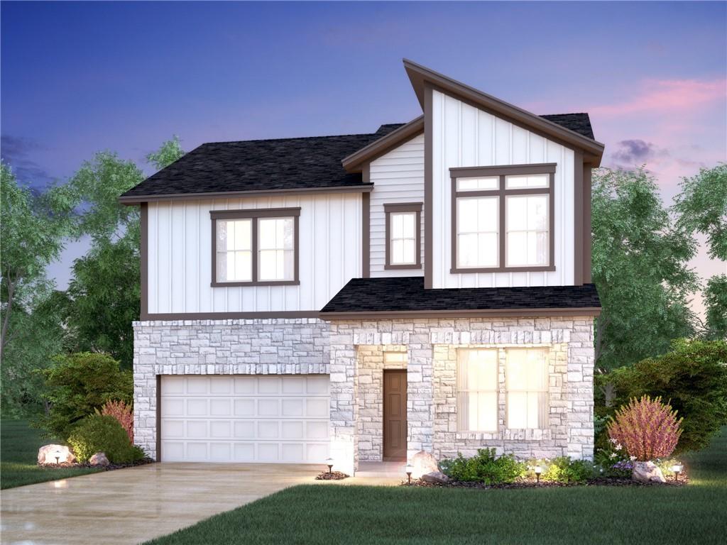 The Randall features 3 bedroom and 2.5 bathrooms, with all bedrooms upstairs and a study down. Fireplace, stained cabinets with painted snow white island, quartz countertops, gas range, extensive wood-look tile floors, frameless oversized shower, faux blinds.