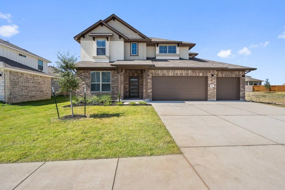 Interest rates as low as 3.875% in the first year, available on select homes for qualified buyers with Milestone Community Builders' preferred mortgage company. See sales representative for details. This spacious two-story plan features two bedrooms on the first floor with soaring ceilings on entry and open concept living, kitchen, and dining spaces. Upstairs you will find a welcoming flex space, media room wired for surround sound, and two additional private bedrooms. 3 car garage. Upgrades include beautiful wood-look vinyl plank flooring, 42” cabinetry and quartz countertops. Access to resort style Crosswinds amenity center with swimming pool, splash park, sport court, dog park, trails and more!