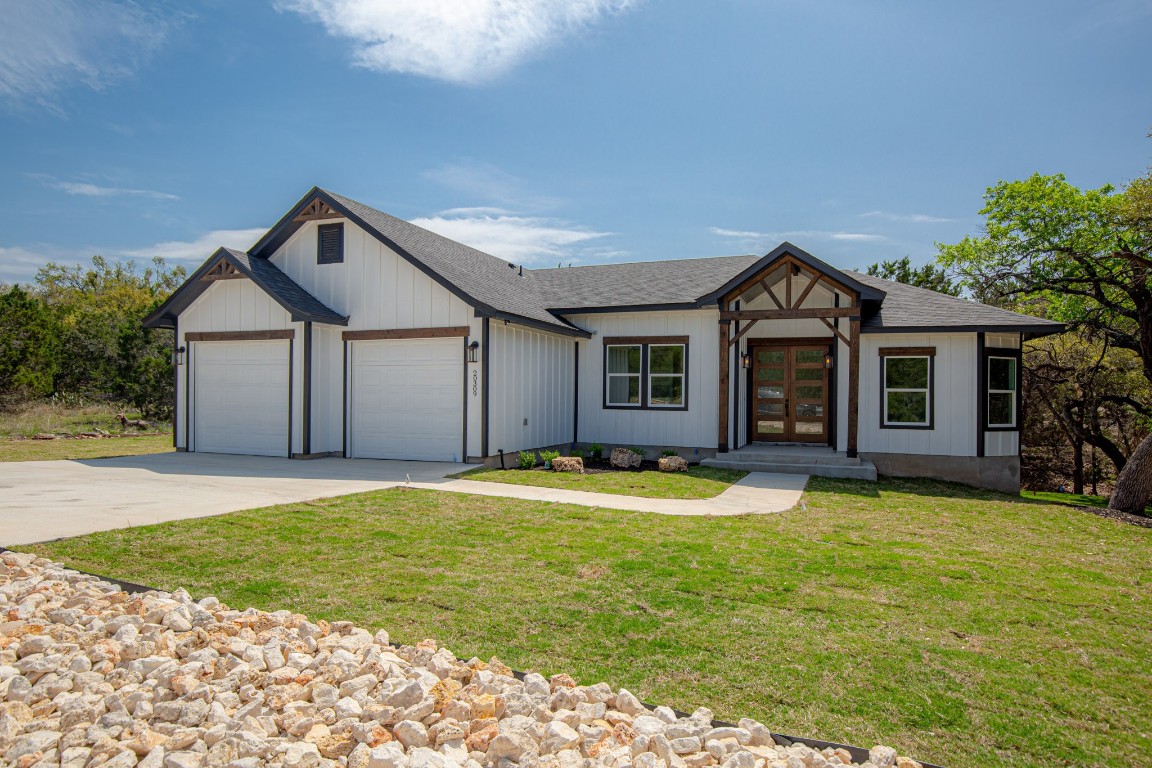 Come fall in love at first sight with this custom built home situated on a stunning lot in the rolling hills of Lago Vista. The home offers an open concept with 3 bedrooms, 2.5 baths and an office. Be captured by the high ceilings, recessed lighting and gorgeous wood floors throughout the main areas as you enter. Step into your dream kitchen with custom details such as a pull-out double trashcan drawer, slide out panty shelves & a slim 2 tier pull-out cabinet along with stainless appliances and tons of cabinet space. The primary suite presents tray ceilings, a large walk-in closet with built-ins and a beautiful en-suite bath that boasts dual vanities, a large walk-in shower and a separate soaking tub. The office welcomes you with impressive French doors. The additional bedrooms pose ample space, large closets and modern 7 blade fans. Enjoy a peaceful morning coffee or a night under the stars on your large sprawling deck with plenty of trees for privacy.