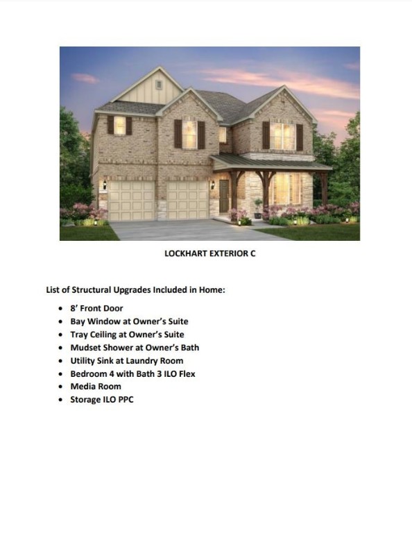 NEW CONSTRUCTION BY PULTE HOMES! Estimated completion date 1st Quarter 2022! Beautiful brick and stone facade. 8-foot entry door. Vaulted foyer. Two full bedrooms and baths downstairs. Large covered back patio. Contemporary fireplace. Bay window at owner's suite, double vanity, and separate tub/shower. Two bedrooms, loft, and media room upstairs.