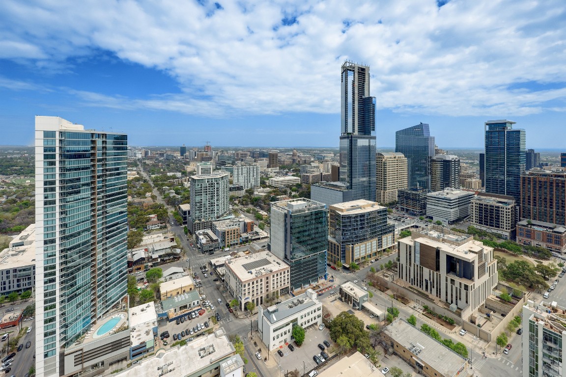 This is the highest level two bedroom condo available in the Seaholm neighborhood! Don't miss the opportunity to live in one of downtown Austin's most iconic buildings, The Independent, located in the Seaholm District and just steps from Trader Joe's, Lady Bird Lake, Whole Foods, and countless eateries, shops, and venues. One of the largest 2 bedrooms with office, this B7 floorplan on the northeast corner has spectacular and long-term protected views of the Capitol and Downtown. 10-foot floor-to-ceiling glass windows bring the outside in and fill the space with tons of natural light. Outfitted with quartz countertops and light wood cabinets, the kitchen is open to the living room and centered around an expansive island, providing tons of storage and prep room, while also being the perfect place to gather and spend time with friends or family. Other features include wood and tile floors throughout, stainless steel appliances, quartz countertops, dual-vanity sinks in the primary bath, spacious private balcony, oversized laundry room and motorized shades. Washer/Dryer and Refrigerator all convey. The Independent has over 20,000 sqft of luxurious amenity spaces spanning two full floors - levels 9 and 34. Some of the fabulous amenities include 24-hour concierge, temperature-controlled infinity edge pool, outdoor lounge/ dining area with grills, multiple clubrooms, fitness center, yoga studio, dog run and wash station, children's playroom, caterer's kitchen, movie room, 2 conference rooms, 3 guest suites and more.