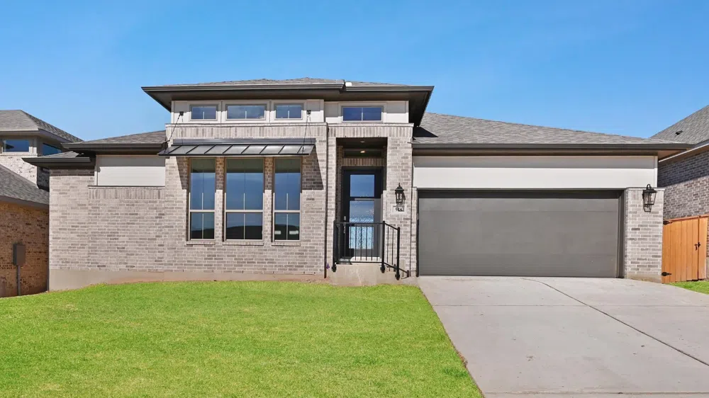 Extended entry with 12-foot ceiling leads to open family room, kitchen and dining room. Family room features 12-foot ceiling and wall of windows. Kitchen features generous counter space, walk-in pantry and island with built-in seating space. Game room with French doors just off family room. Primary suite includes bedroom with 13-foot ceiling and wall of windows. Dual vanities, garden tub, separate glass-enclosed shower and two walk-in closets in primary bath. A Hollywood bath adds to this four-bedroom home. Covered backyard patio. Extended covered backyard patio. Mud room off three-car garage.