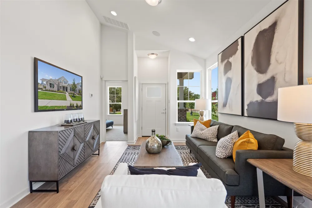 The Porch is an inviting lock-and-leave community 1 mile away from all the local dining, boutique shopping, and entertainment that charming Historic Downtown Buda has to offer. The Laurel floorplan is a favorite, boasting an airy and inviting feel with vaulted ceilings, ample natural light, open-concept living, and a downstairs primary suite. Additionally, there are 2 bedrooms upstairs + a second living area. All appliances are included—washer, dryer, and refrigerator—making a move effortless. Enjoy your spacious front porch, perfect for morning coffee or evening relaxation. Additional perks include a two-car garage with alley access and ample storage space. Zoned to highly rated Buda schools! Receive $10,000 in flex cash when using preferred lender, CMG Financial. Teachers, veterans, and first responders-- ask about our Heroes Program for additional incentives! All homes in The Porch come with a 1-2-6 Homes of Texas Warranty for peace of mind + Prominence Homes offers a new home orientation and blue tape walkthrough with a dedicated construction manager. Blending classic Southern charm with modern comfort, these townhome-style condominiums are set in a community featuring sidewalk-lined streets, creating a welcoming and connected atmosphere. Don’t miss your opportunity to own in one of Buda’s most charming and unique communities—schedule your tour today. Model Home is open to public from Thursday-Sunday; Monday-Wednesday by Appt Only. **Photos are of model home. This home is across the courtyard.**
