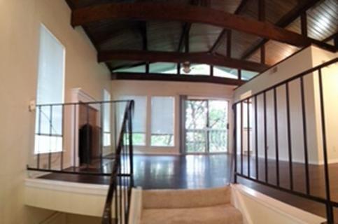 Spacious 3 Bdrm, 2 Bath Duplex on a private hillside with lots of trees and wildlife. Lots of storage and walk-in closets. Two master suites and office/3rd bedroom with built-in bookshelves. Cathedral wood ceilings in living room and dining room with fireplace and second story balcony. Vinyl plank floors in main areas, ceramic tile, carpet down. Utility room inside unit - all electric utilities. Limited parking - only 2 cars allowed no exceptions. Washer/dryer hookups in utility room and frig is included in unit. Best qualified applicant. Listing agent is resident manager. New carpet coming with ceilings and storage room downstairs to be painted. 6-month lease.