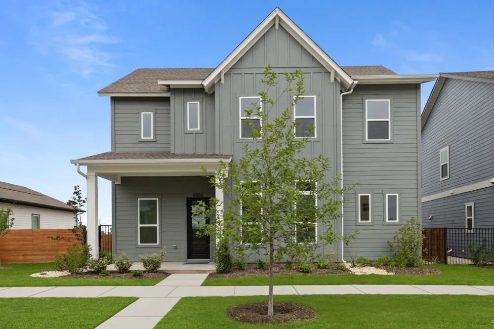 Refined balance of classic comforts and modern luxuries come together to make this new construction home in Goodnight Ranch a great place to build your future! A stunning farmhouse exterior greets you from the curb while grandeur awaits inside with 11’ ceilings and luxury vinyl floors flowing throughout the main living spaces and study of this Ragsdale by David Weekley Homes. Craft the backyard of your dreams on this 75' homesite with views of downtown Austin and ample outdoor living space. Large windows enrich the open-concept layout with natural light bringing warmth to this modern design. Each bedroom features ample living and closet space. Your gourmet kitchen includes an upgraded cooktop with under-cabinet vent hood to support your culinary ambition. Retreat to the deluxe Owner's Retreat for a luxurious living experience and enjoy winding down your day in the expansive shower or spa-inspired soaking tub. Experience the best of each morning while dressing in the over-sized Owner's Closet with center island. Call David Weekley’s Goodnight Ranch Team to learn about the industry-leading warranty and EnergySaver™ features included with this new construction home for sale in Austin, Texas! Our EnergySaver™ Homes offer peace of mind knowing your new home in Austin is minimizing your environmental footprint while saving energy. A David Weekley EnergySaver home in Austin averages a 60 on the HERS Index. Square Footage is an estimate only; actual construction may vary.