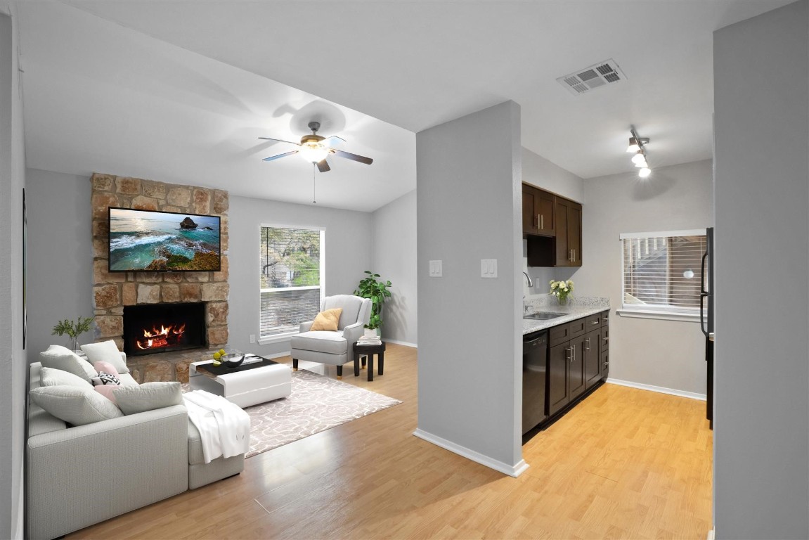 Amazing price and great location for this two bedroom, one bathroom condo that is a must see! This well maintained condo has a stone fireplace, dry bar, pantry, black appliances, granite countertops in the kitchen and bathroom, vinyl planking in all areas except the carpeted bedrooms, full bathroom and walk-in closet. Unit comes with a Refrigerator and a Stackable Washer and Dryer! Awesome location in South Austin with easy access to downtown, bus stops, and all the amenities off Westgate and William Cannon areas to include Central Market, HEB, coffee shops and large shopping centers. No need to look any further - you have found your home!