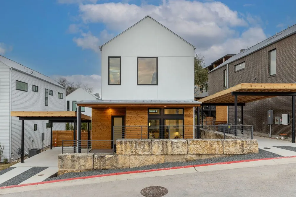 Thurman Homes returns with a new build in the heart of old 78704. Experience the epitome of urban living in these stunning 2-bedroom, 2.5-bathroom new construction homes. Nestled in the heart of Austin's vibrant Bouldin Creek neighborhood, Frank offers a harmonious blend of modern luxury and natural beauty. The pocket community is bounded by Bouldin Creek to the west, and a park to the north. The exterior pays homage to the heavily-treed setting with touches of stained wood siding and exposed beams. Step inside to discover a spacious interior curated with contemporary minimal Scandi finishes that enhance the open-concept layout. A covered deck extends the living area to the outdoors, perfect for relaxation or entertaining. Upstairs provides a retreat including two bedrooms, two baths, with a laundry right where it’s needed. These bedrooms take advantage of the airy vaulted height with additional high windows, increasing natural light without sacrificing privacy. Walk or cycle over from the hike and bike trail just minutes away to discover modern living at Frank.