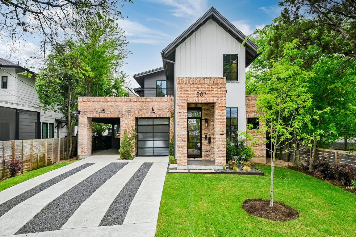 Situated on a quiet street in the heart of Bouldin, this architectural masterpiece with exceptional quality construction by Capital Construction Company and design by award-winning Witt Architecture awaits. Impeccable design by renowned Houzz award winner Glynis Wood Design creates a modern aesthetic mixed with artistic tiles and soft colors. Enter through a large glass door to a well-sized office, that could serve as a 5th bedroom with a detached full bath. The dedicated office, or potential 5th bedroom with closet, is adorned by a rustic reclaimed wood barn door that offers both privacy and a visually stunning focal point. A built-in desk area is situated just off the living room, adjacent to the shiplap mudroom with access to the one-car garage and carport. The home features an open concept kitchen, living & dining room. Expansive windows and a wall of glass doors open from the bright living area onto a covered outdoor living room, seamlessly blending indoor/outdoor living. The large backyard with built-in grill and fireplace is ideal for entertaining and ready for a custom pool. The designer kitchen has an incredible walk-in butler’s pantry that serves as a laundry and prep area. The primary suite is ideally located at the rear of the home on the main level with an incredible reclaimed wood ceiling and an abundance of natural light. The serene bath offers a soaking tub, walk-in shower, and expansive closet with custom built-ins. The remaining three bedrooms are located upstairs with two full bathrooms, an open game room/living space, and a rooftop terrace. With white oak flooring throughout, Thermador appliances, reclaimed Old-Chicago brick accents, designer lighting fixtures, and custom window coverings, this home exudes warmth and charm. Located within walking distance of local restaurants and shops, and a short drive to the best of Austin’s dining, shopping, and entertainment on SOCO and SOLA.